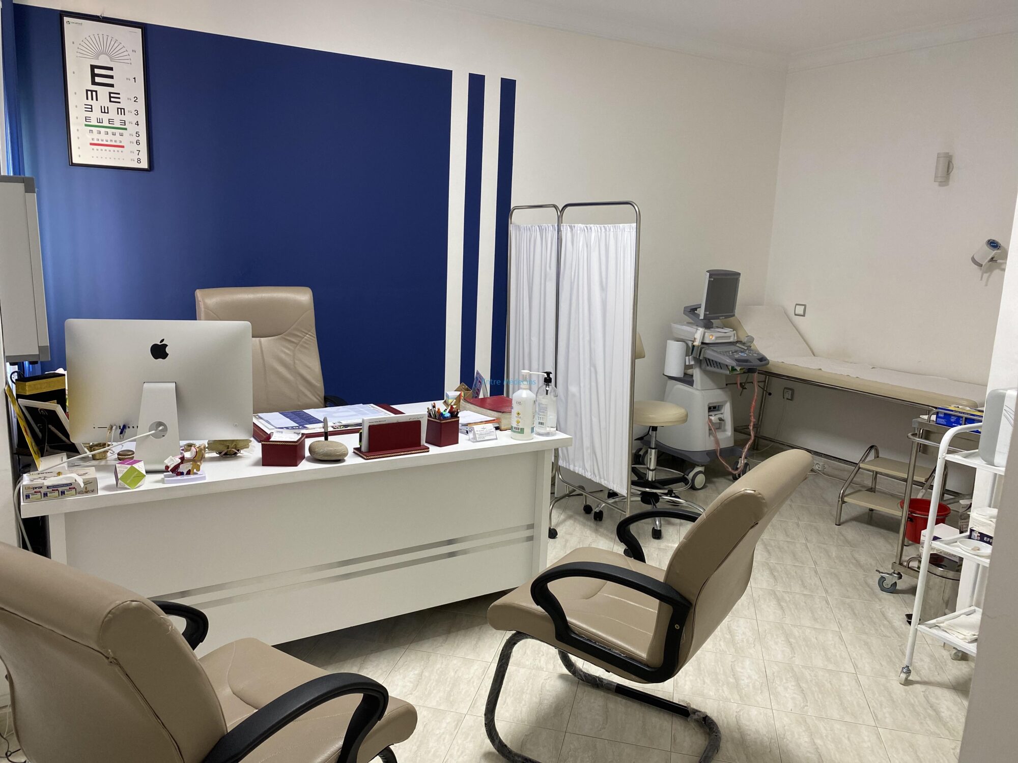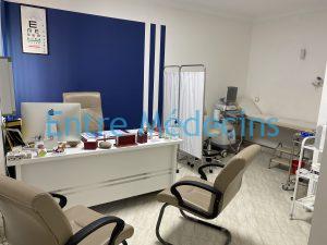 Le cabinet se situe au deuxième étage doté d un ascenseur . Il est d environ 60 m2 avec une salle de consultation avec matériel bureautique et médical +Clim ( bureau plus 3 chaises , échographe landwind f40 avec une sonde convexe , ECG biocare iE 300 3pistes etc, lit d exam avec lampe led etc )