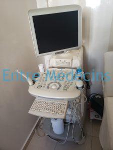 Echographe Medison X8, ainsi que tout le matériel médical. 12 chaises Bureau médecin Comptoir secrétaire avec chaise.