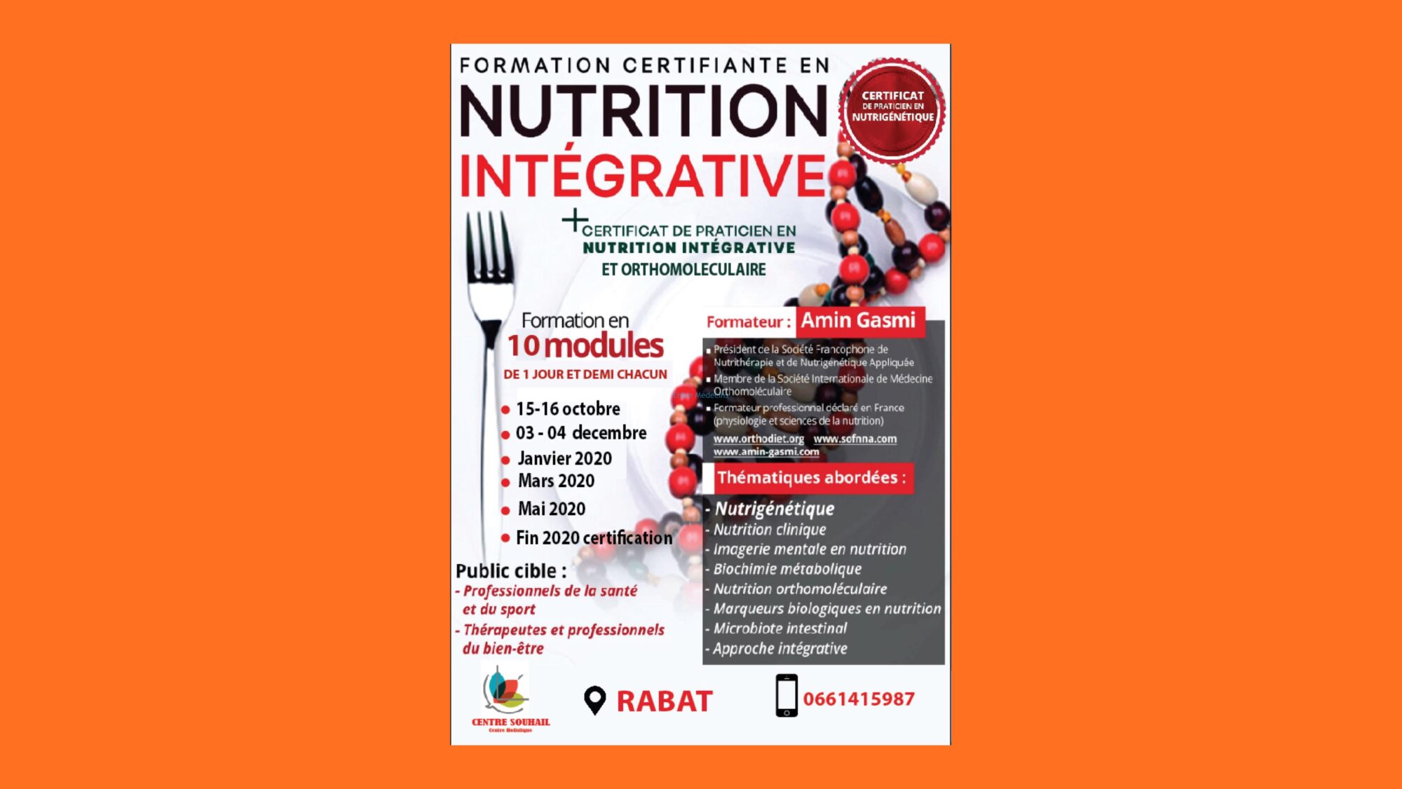 ➡️Formateur : Amin Gasmi président de la SOFNNA (Société Francophone de Nutritherapie Nutrigenetique Appliquée )