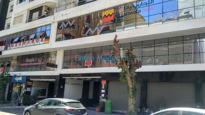 Local entouré de cabinet dentiste, opticien, notaire, administration AttijariWafa, Ecole hostesses de l’air, centre de langues, cafés et restaurants…