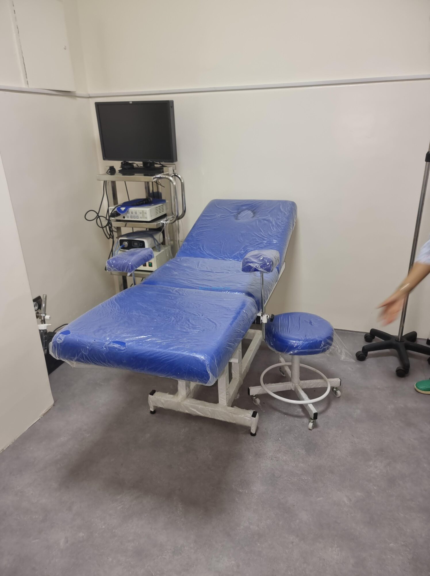 Table d examen bleu état neuf cassable avec jambières pour postion gyneco et tabouret