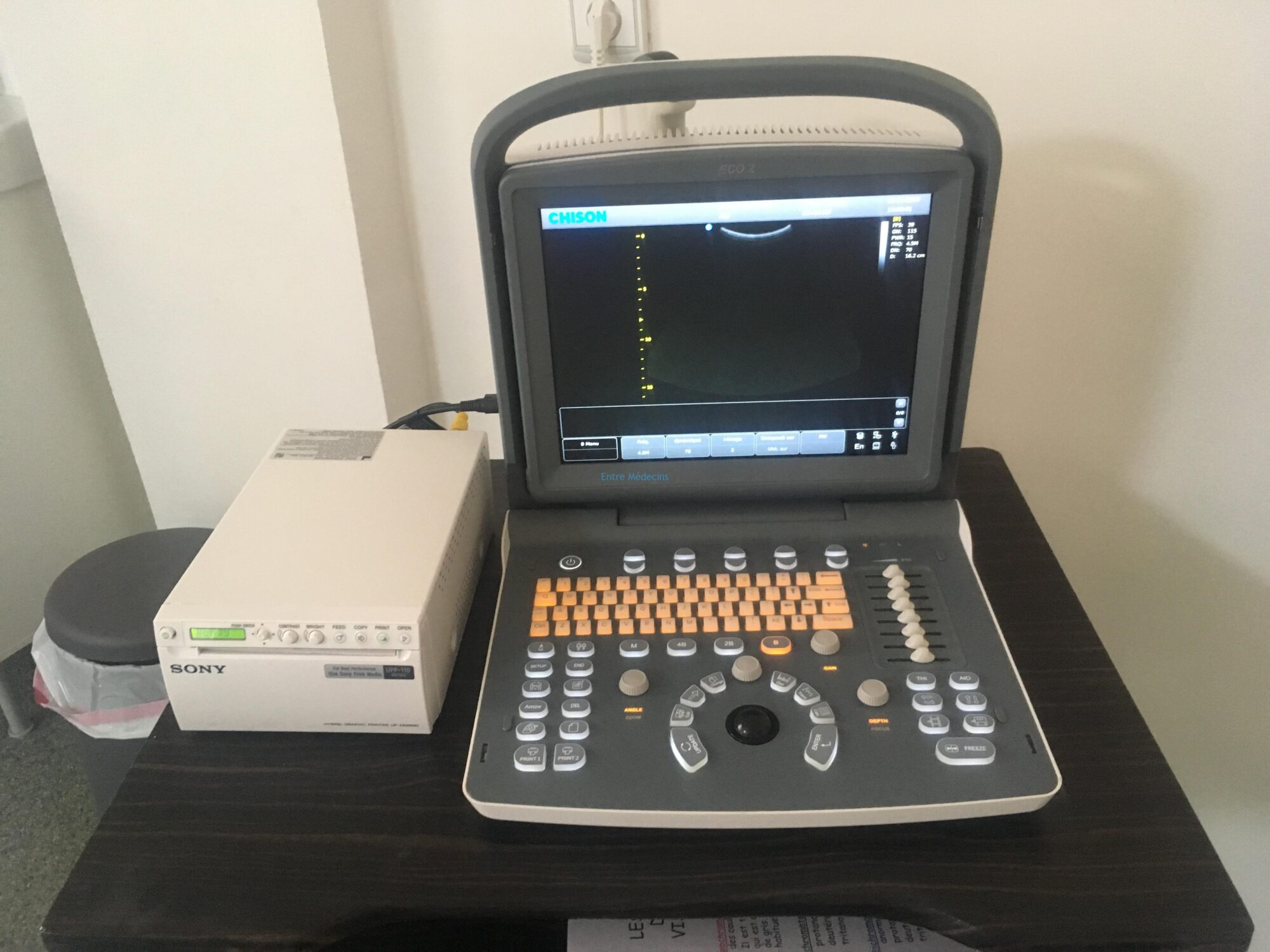 Je mets en vente un échographe chison éco 2 avec une sonde convexe et une imprimante Sony. Première main, excellent état, si vous intéressés, contactez-moi par e-mail